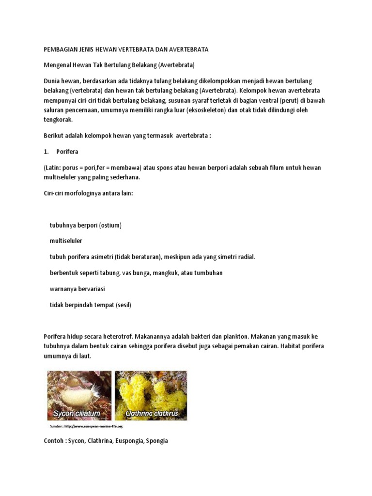 Contoh Hewan Invertebrata Dan Vertebrata Hisham Id Biologi